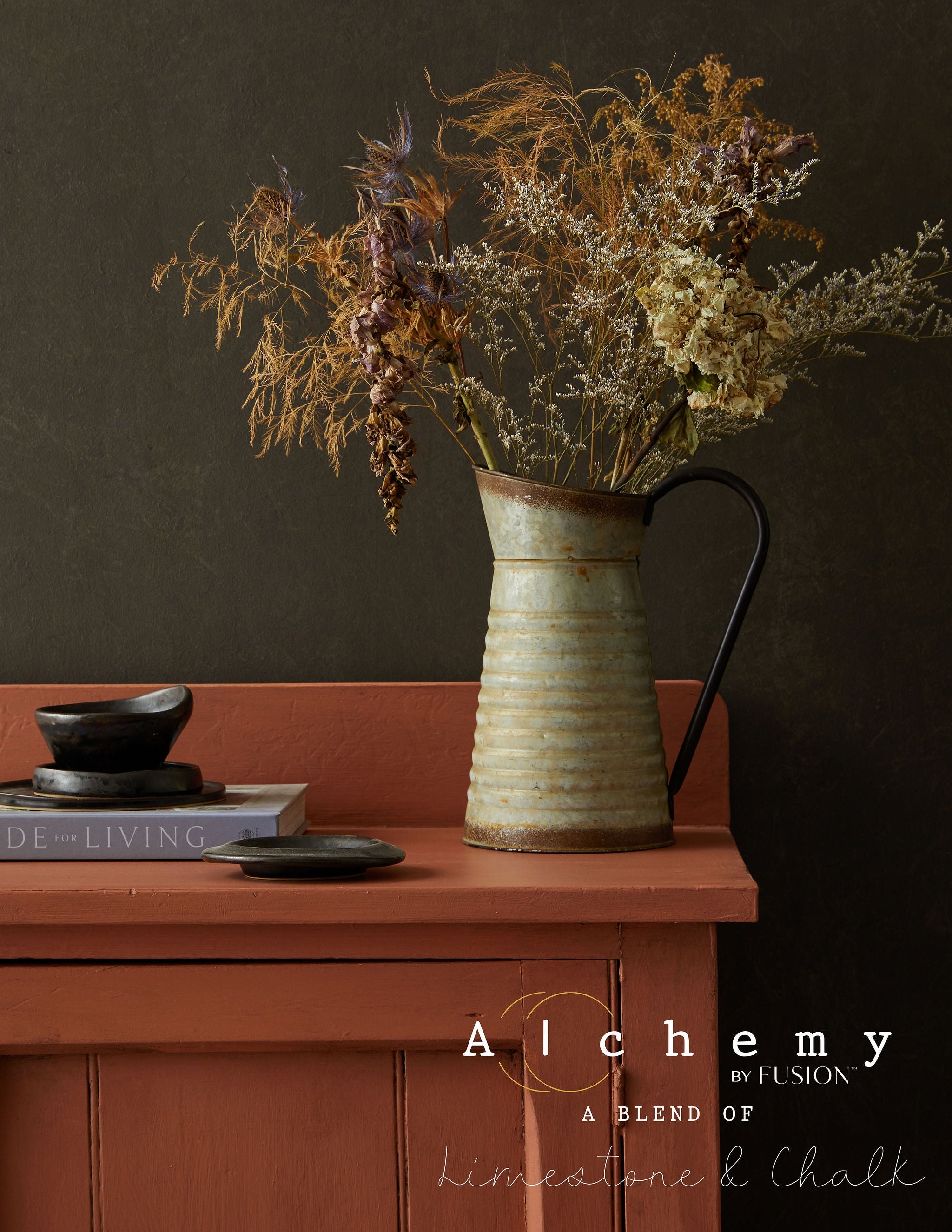Experience the magic of Alchemy by Fusion Limestone & Chalk style paint. This one-of-a-kind formula combines the best of Fusion's high-performance resin with Milk Paint's rich pigmentation and effortless application. With a classic flat finish, stronger durability, deeper color, and no need for a topcoat, you can become the alchemist of your own design. Transform your furniture with ease and elegance.