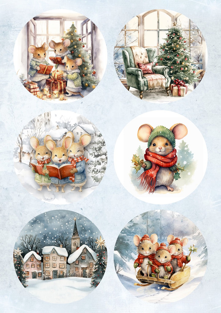 Decoupage Queen Rice Paper Christmas Mice Rice Paper A4 8.3 x 11.7 in