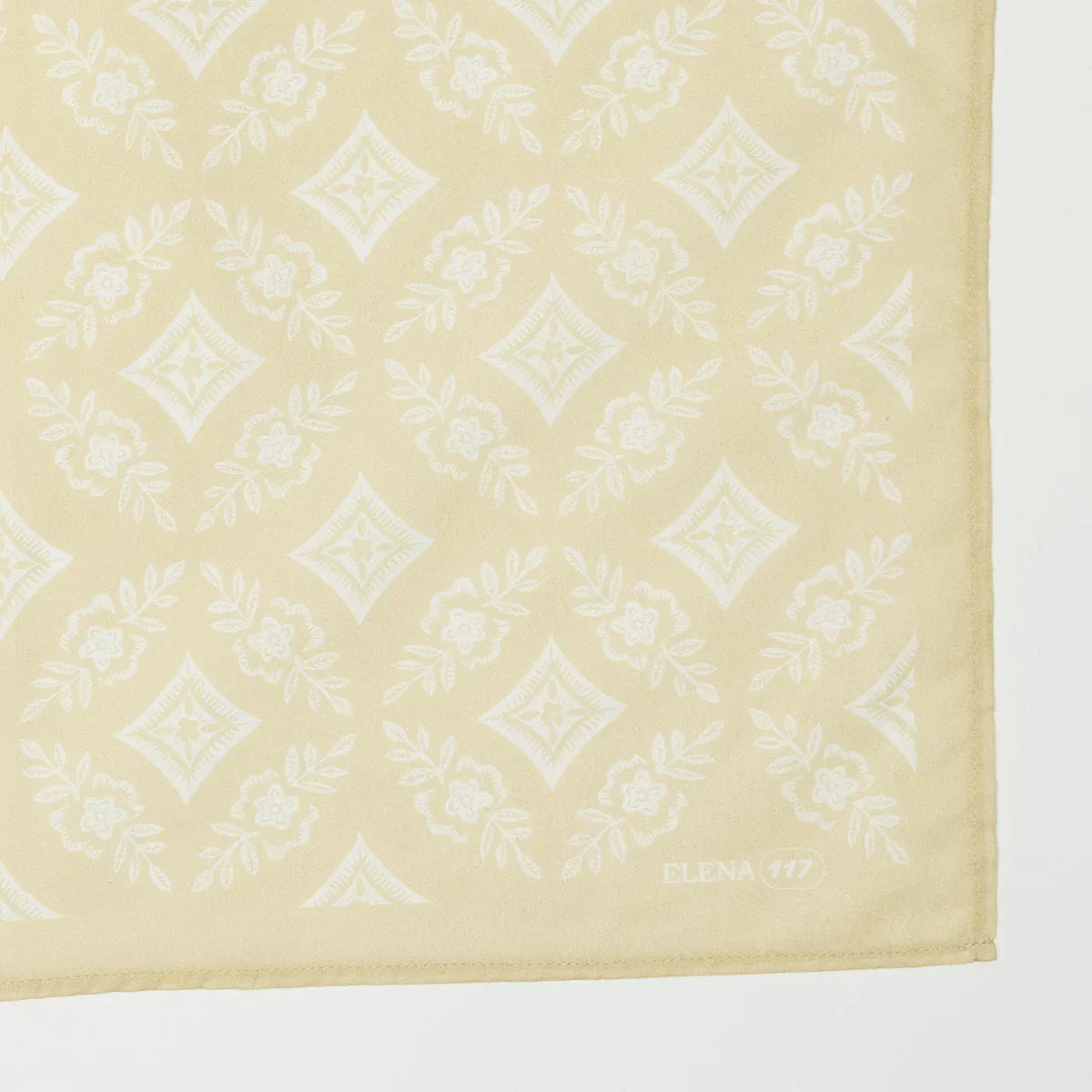 Traditional repeat pattern of diamonds and circles. Goes with anything! Dress up or down,. Great for anyone. Warm taupe cream background with bright white accents (tone-on-tone cream and white)