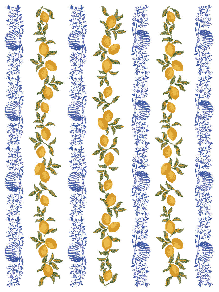 Portofino features detailed vignettes, elegant borders, and classical typography that will infuse each project with a touch of European heritage. Whether you embellish a vintage bread box, or a set of ceramic coasters, or refurbish a cutting board with playful lemons, the pretty details welcome both playful and sophisticated projects.