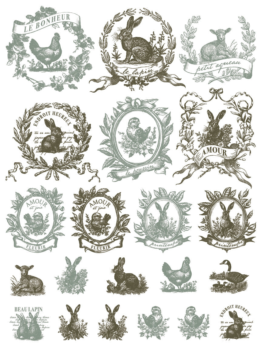 Imagine those sweet rabbits on small décor and mixed media or bold, breathtaking statements with clusters of roses on a vintage dresser.